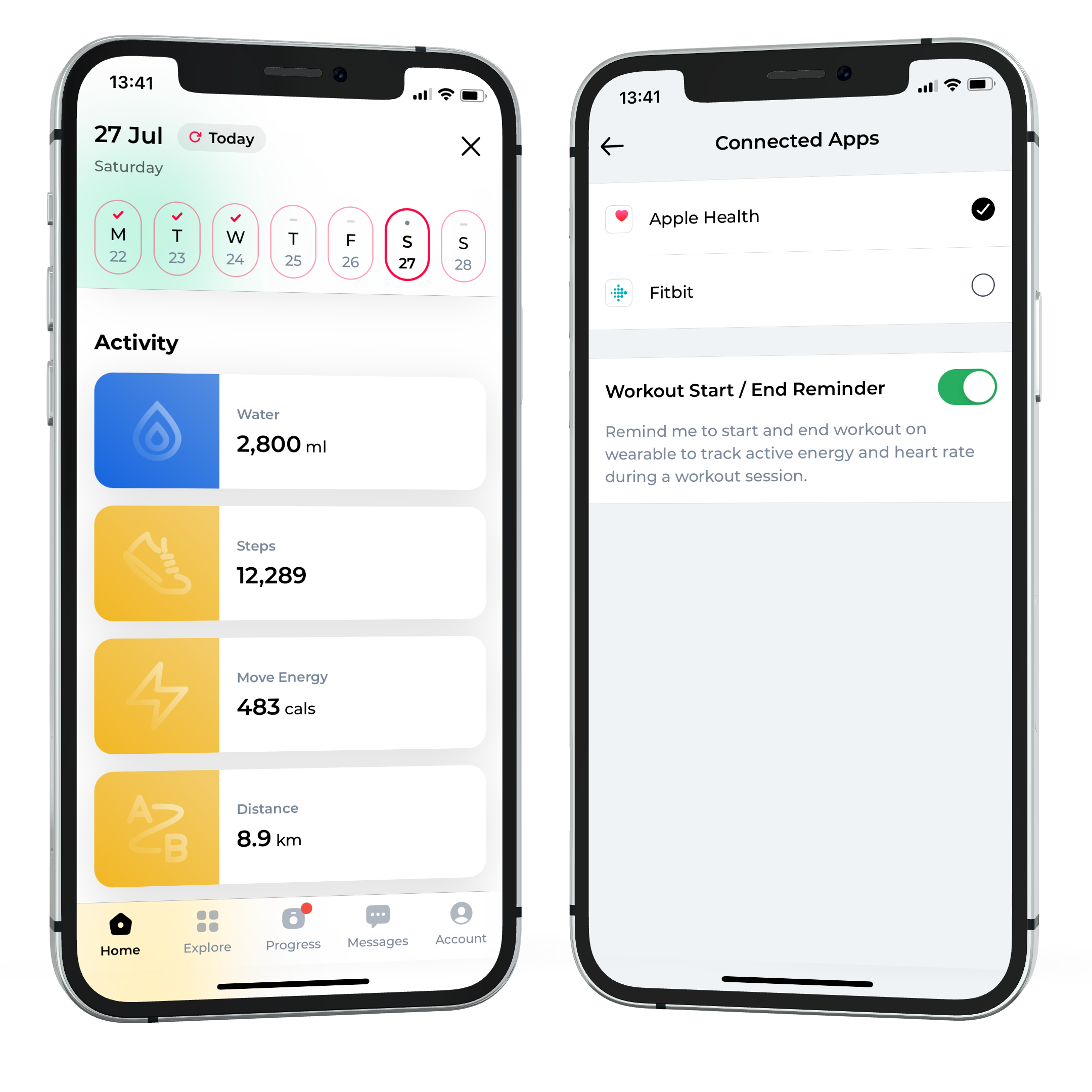 Your workouts, your data, all in one place. Connect your Apple Watch or Fitbit to track daily steps, active calories, and workout performance effortlessly. Stay on top of your fitness game with real-time insights.